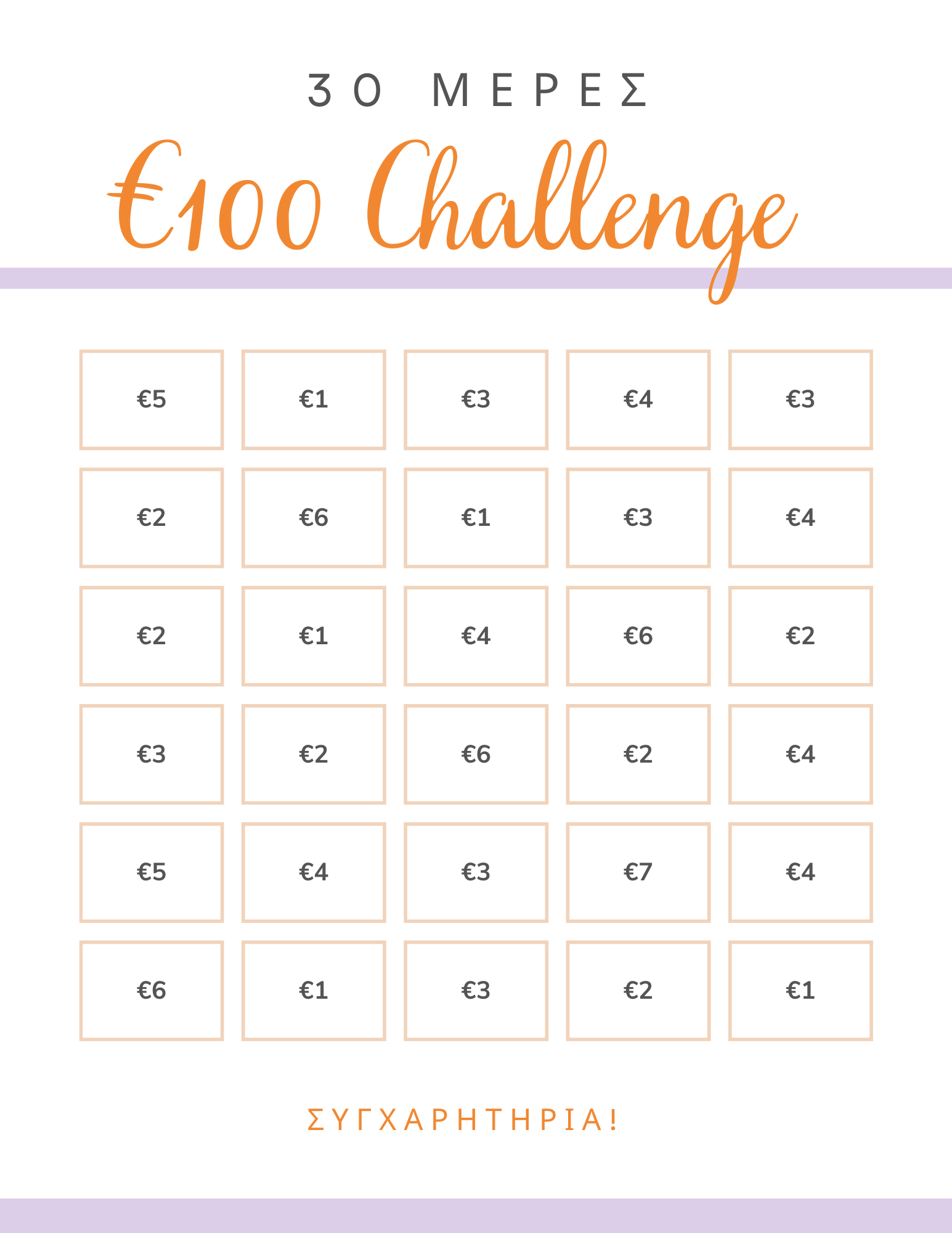 Κάθε μέρα βάζε στον κουμπαρά σου ή στον αποταμιευτικό λογαριασμό σου το ποσό που καταγράφεται στον πίνακα.